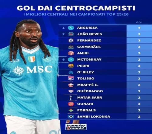 1. 安古伊萨(那不勒斯) 4球